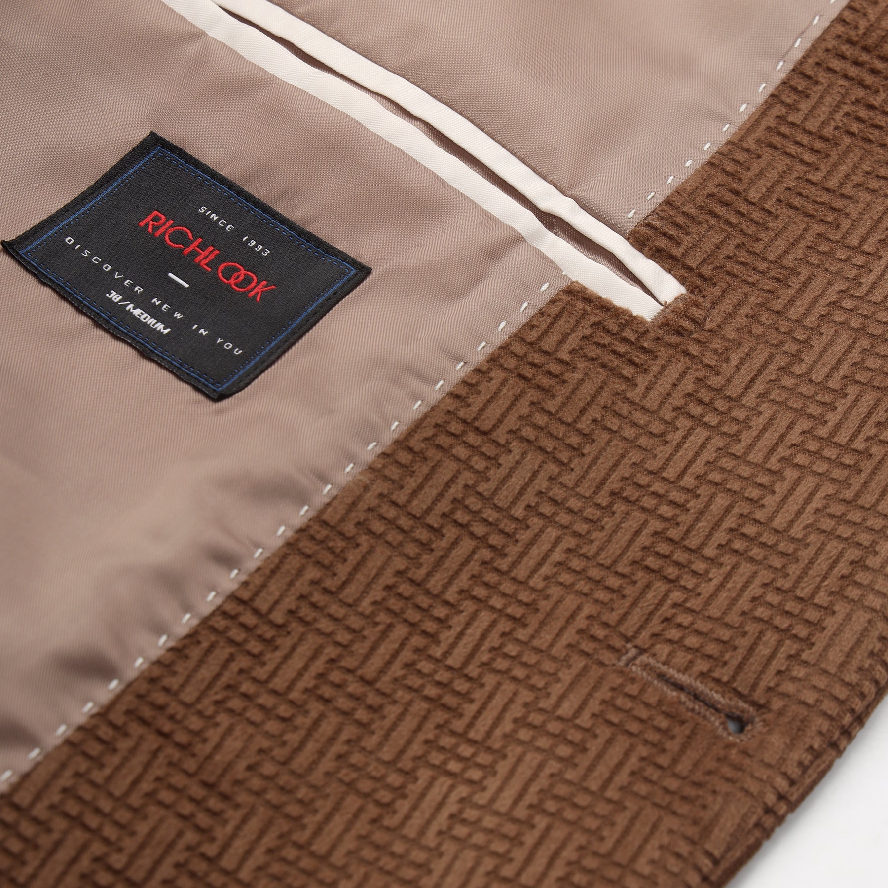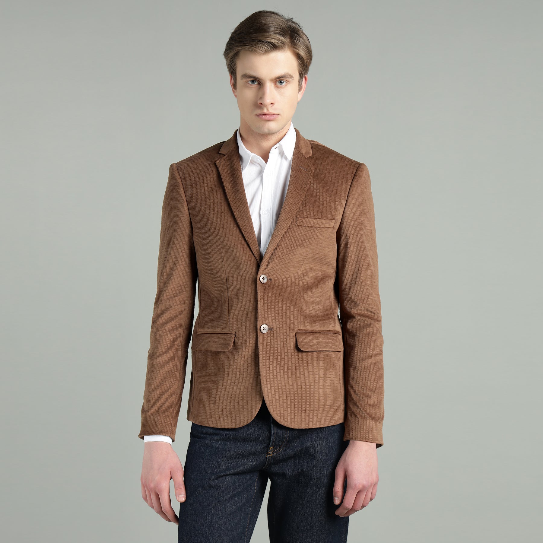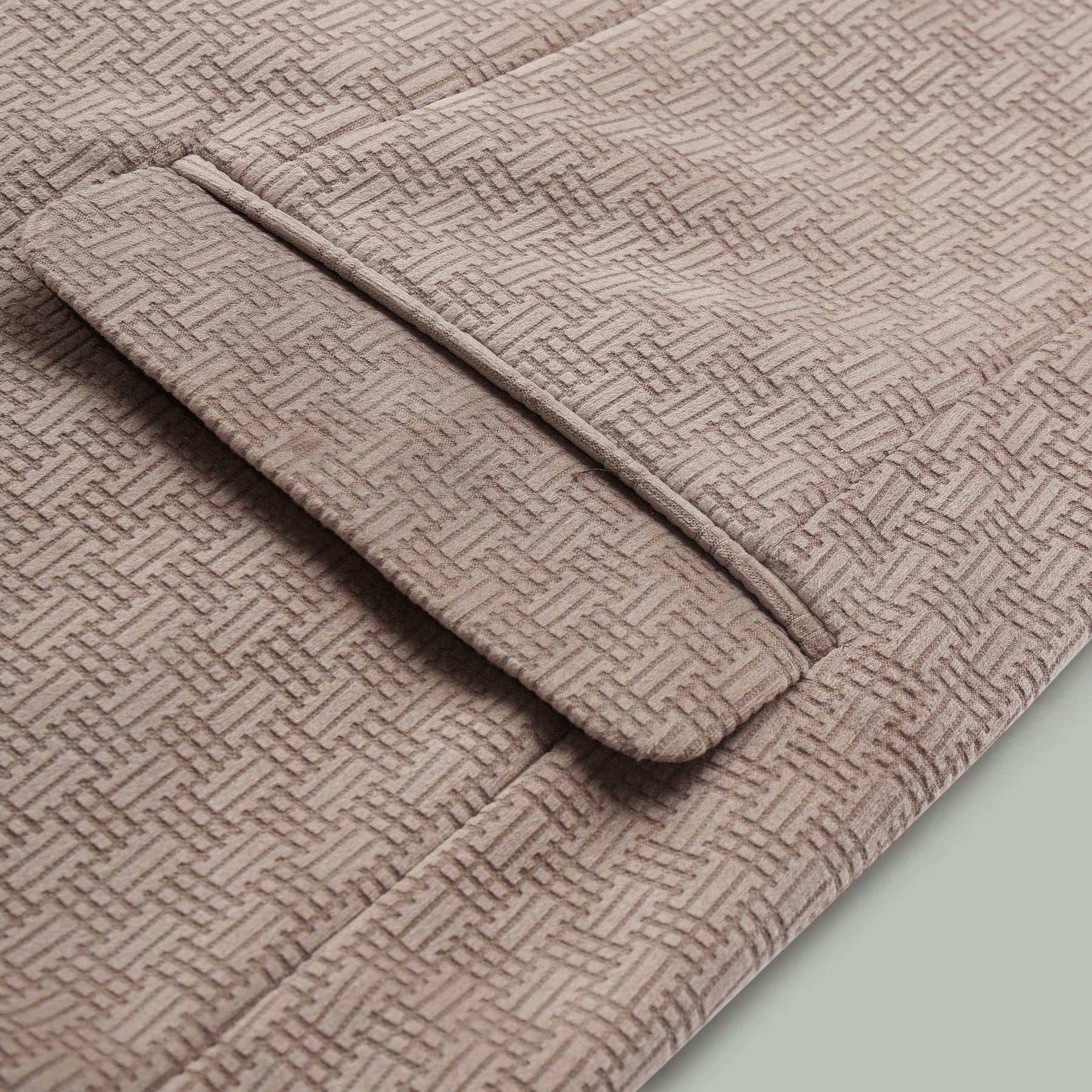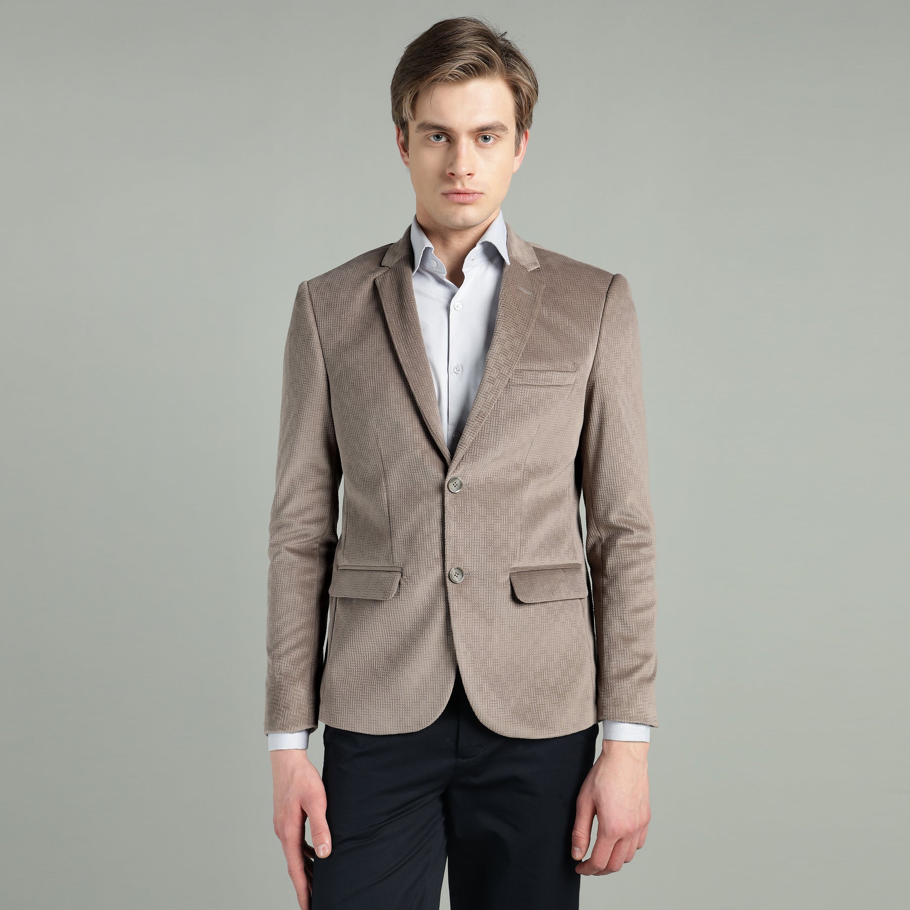 Elevate your formal and partywear collection with this Men’s Beige Textured Jacquard Blazer, crafted from a premium polyester blend for a refined and sophisticated look. The blazer features a unique geometric jacquard texture that adds depth and richness to the overall design while maintaining a structured and elegant silhouette.
