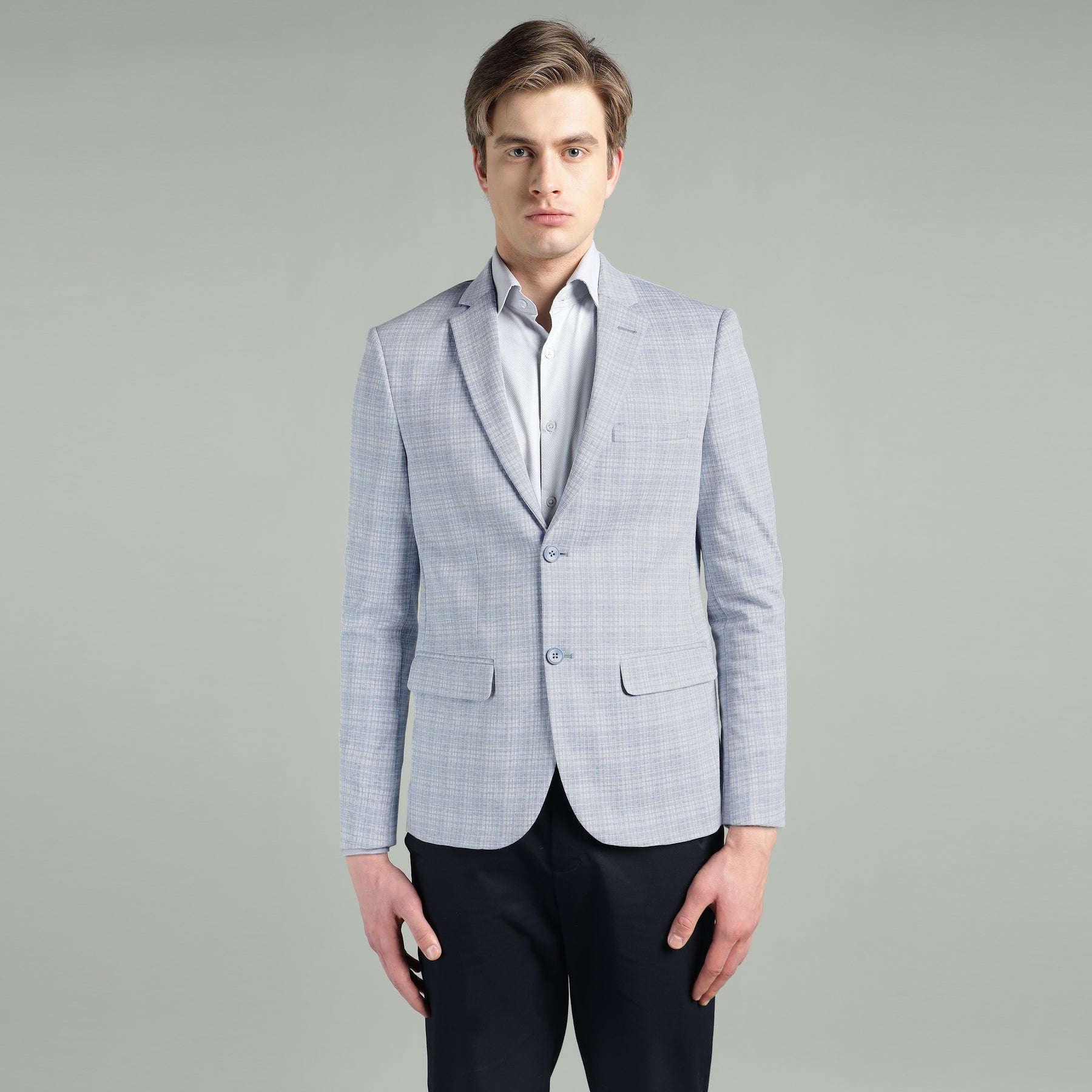 Men’s Light Grey & Light Blue Knitted Check Blazer