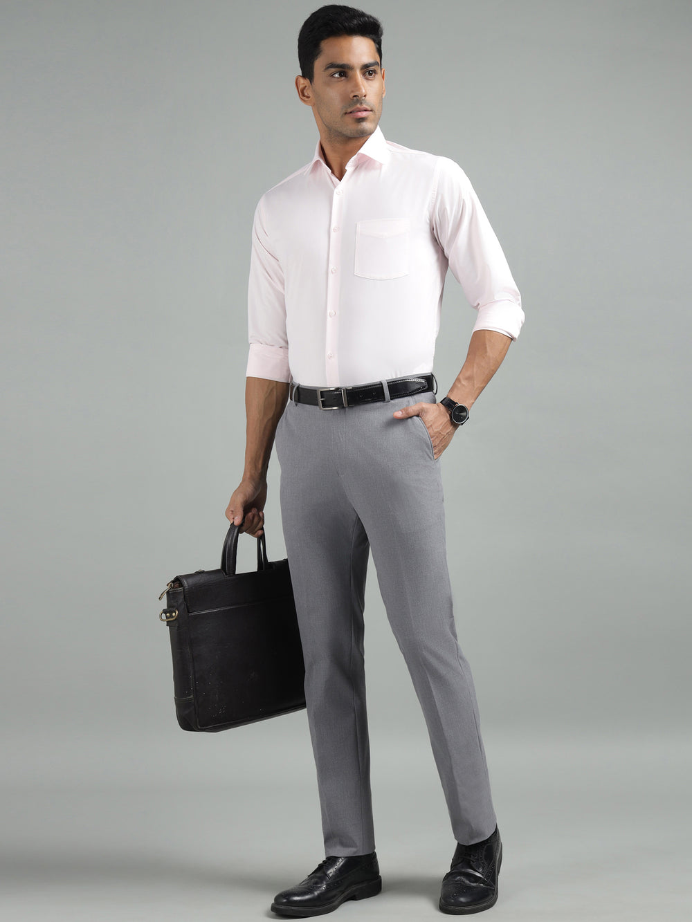 Men Charcoal Grey Standard Fit Solid Formal Trouser