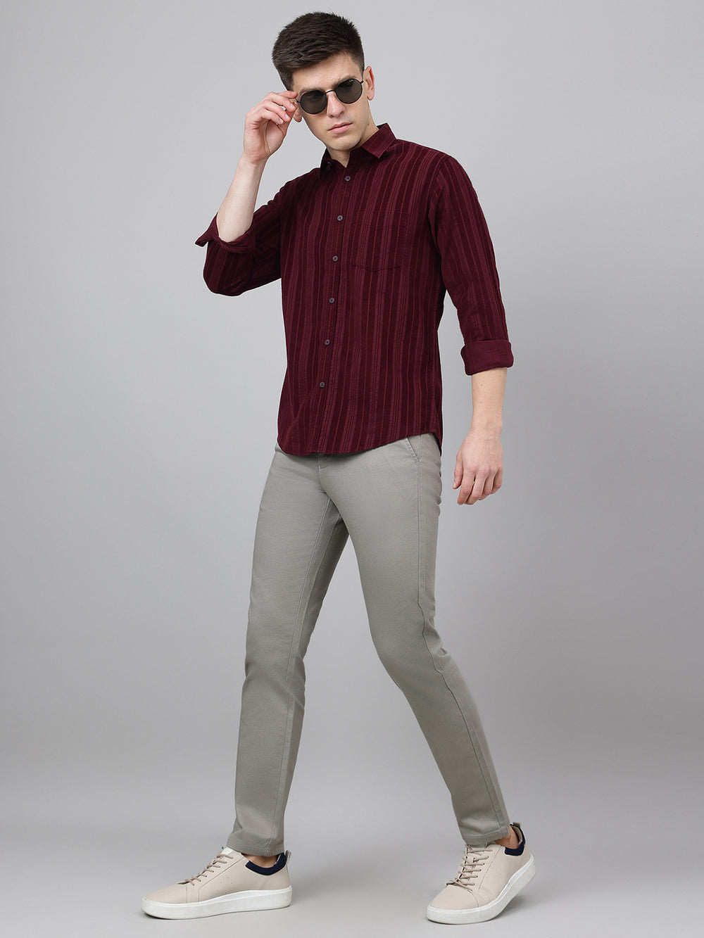 Men Grey Slim Fit Mid Rise Casual Trouser