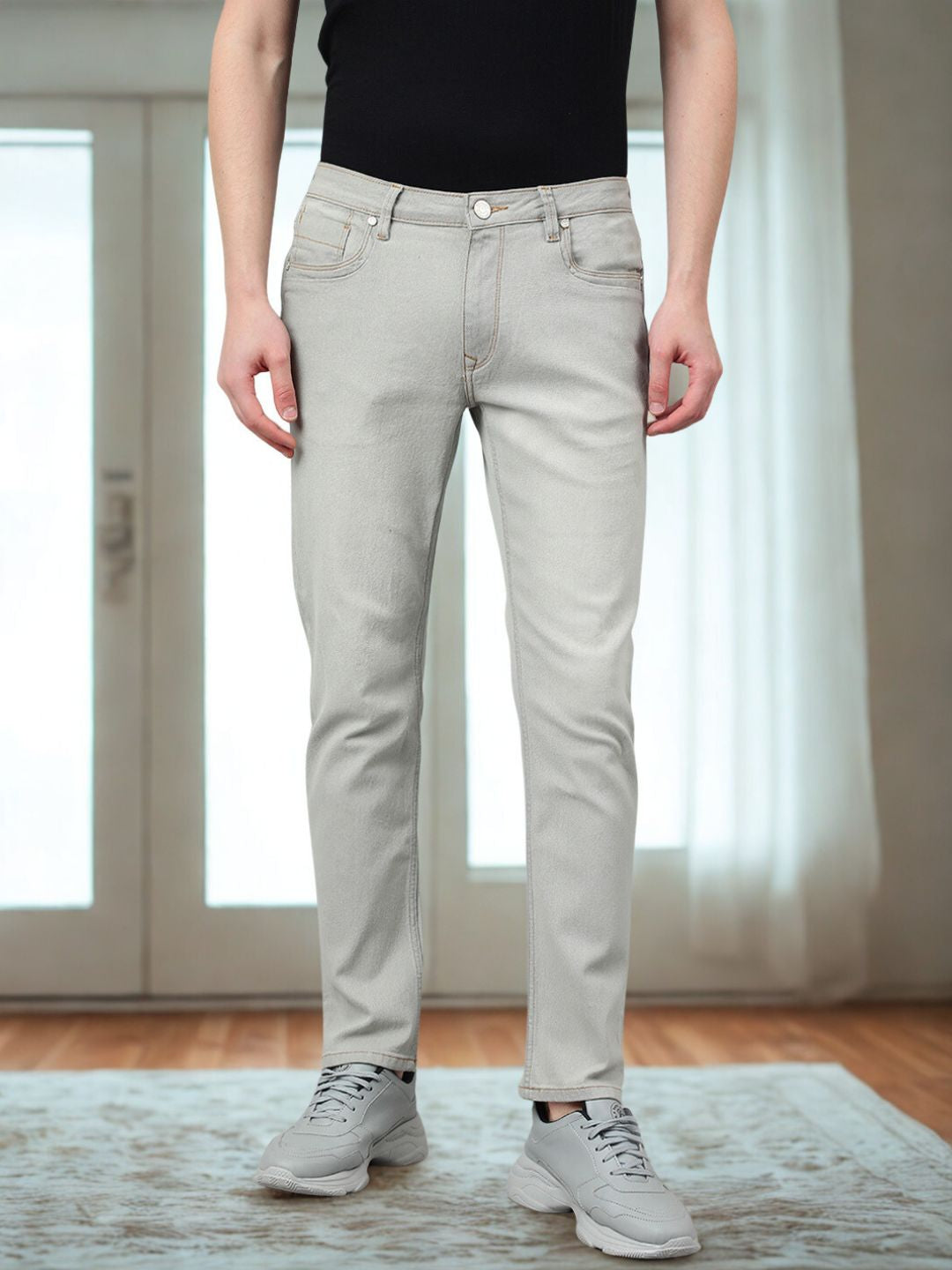 Men Dusty Grey Slim Fit Mid Rise Jeans