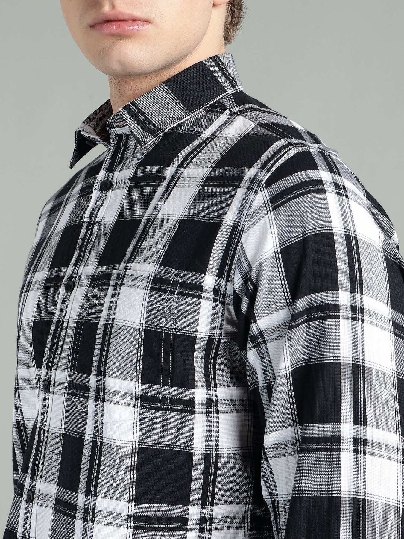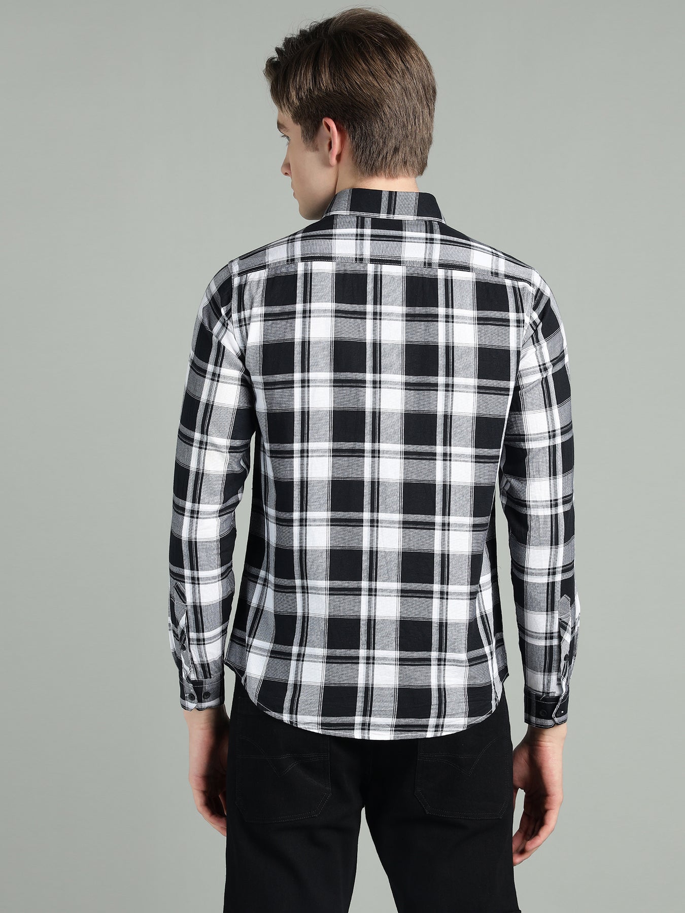 Men’s Black & White Checkered Casual Shirt