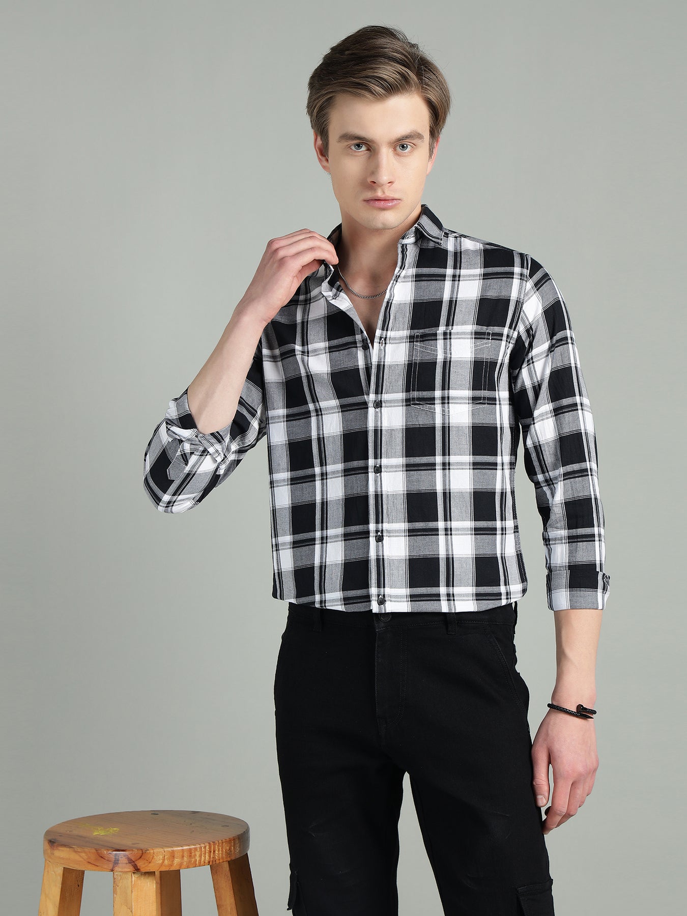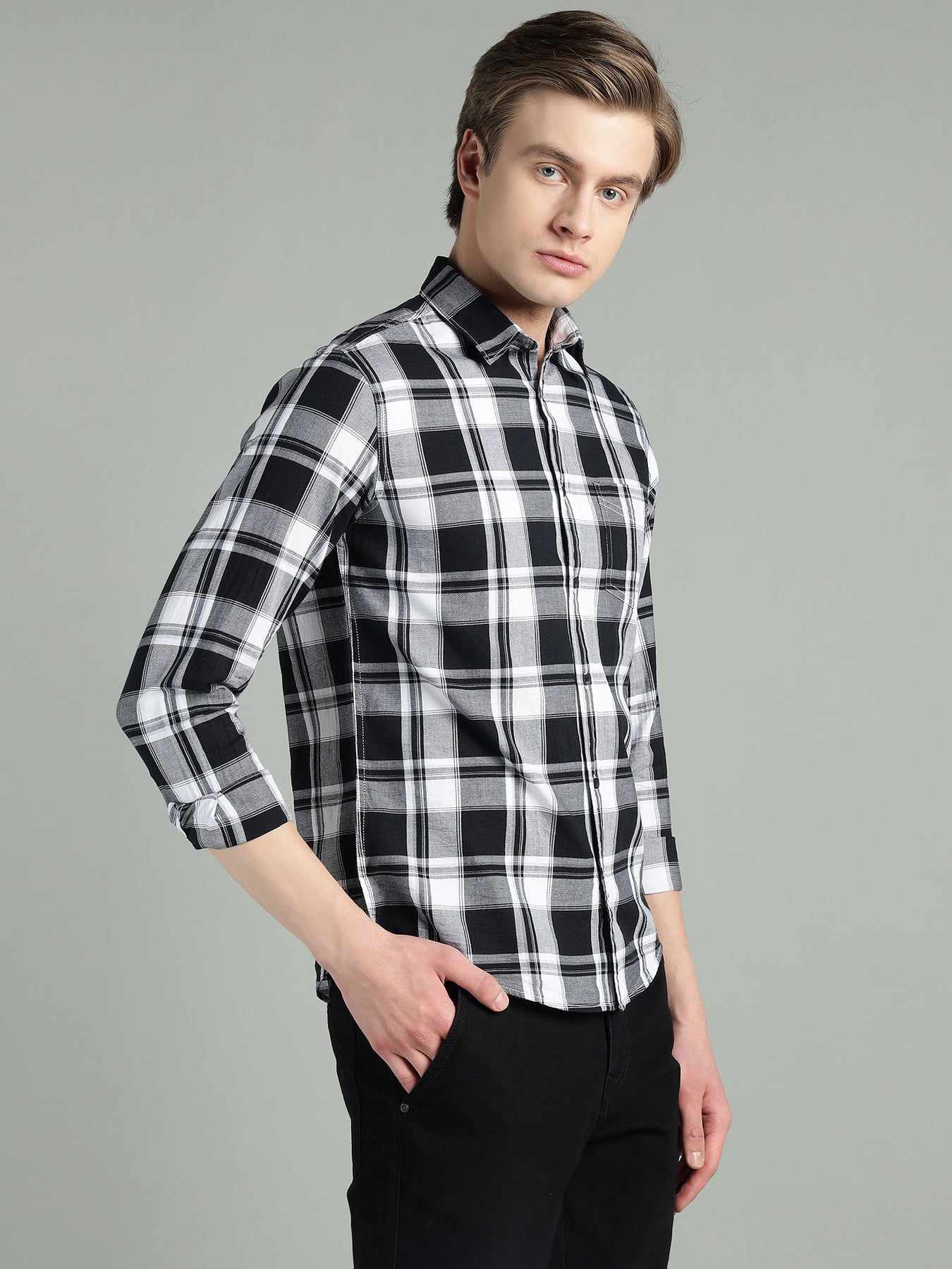 Make a bold yet timeless style statement with the Richlook Men’s Black & White Checkered Casual Shirt, designed to deliver everyday comfort with a sharp, confident look. Featuring a classic checkered pattern and a modern regular fit, this shirt is ideal for men who prefer effortless style with a refined edge.
