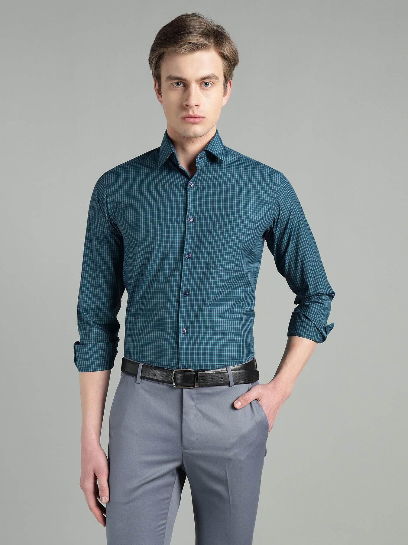 Crafted from a premium breathable cotton blend fabric, it offers superior comfort, durability, and a crisp finish that lasts throughout the day. The classic spread collar, full-sleeve design, and fine stitching enhance its polished appeal, making it an ideal choice for office wear, business meetings, corporate events, and smart casual occasions.