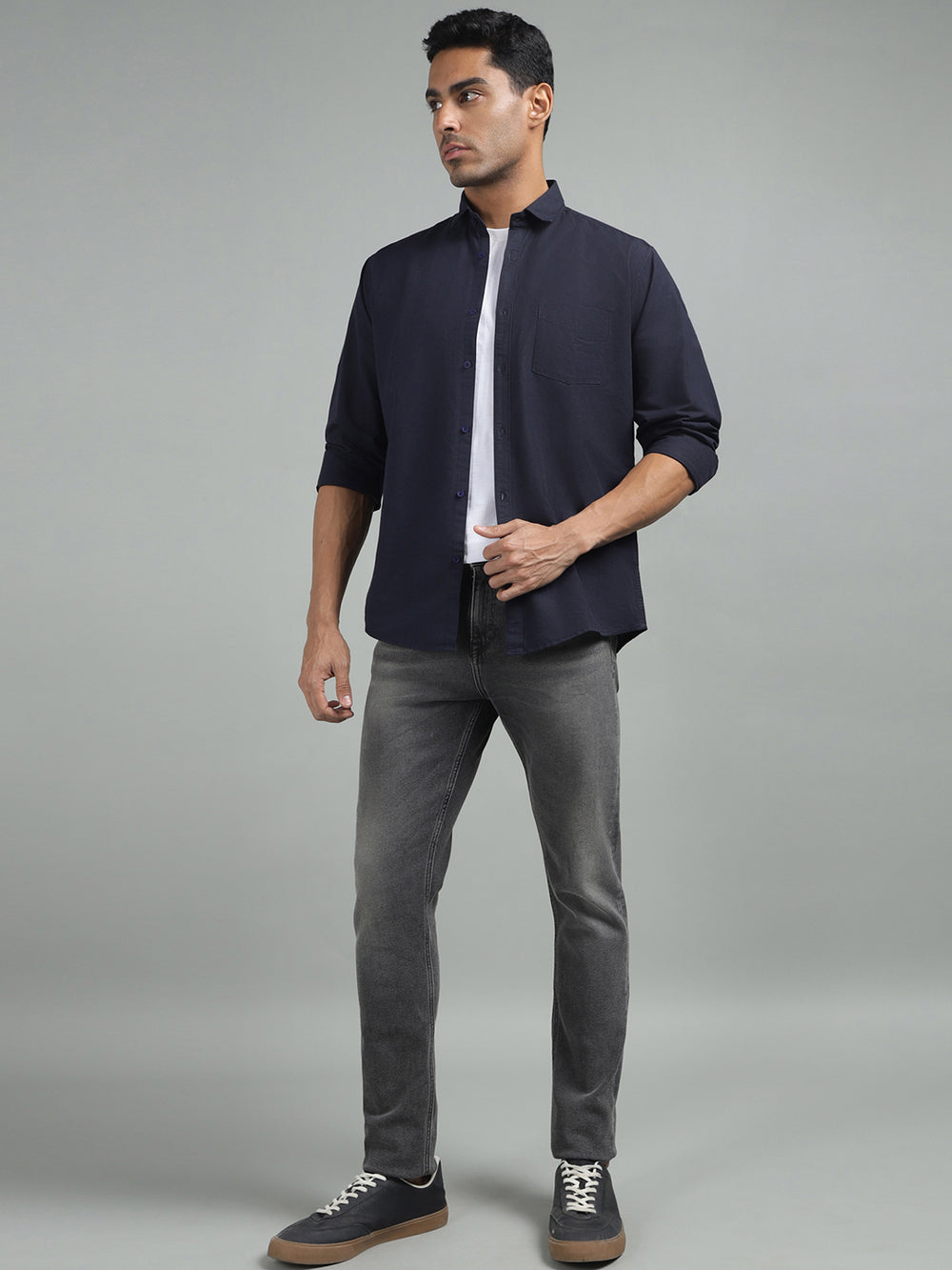 Men Solid Dark Navy Regular Fit Casual Shirt