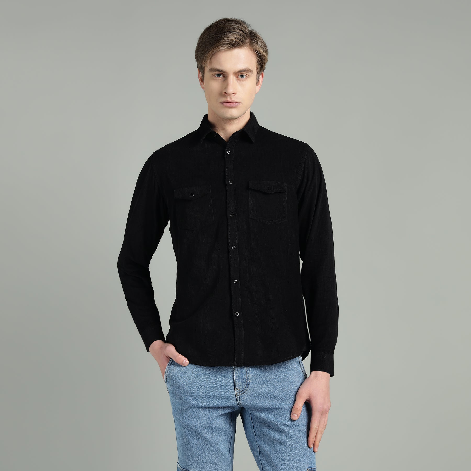 Upgrade your winter wardrobe with this Men’s Fine-Wale Corduroy Shirt, crafted from a premium soft cotton-blend fabric that feels warm and comfortable throughout the season. The fine vertical ridges add a refined textured look, offering a perfect balance of style and insulation.