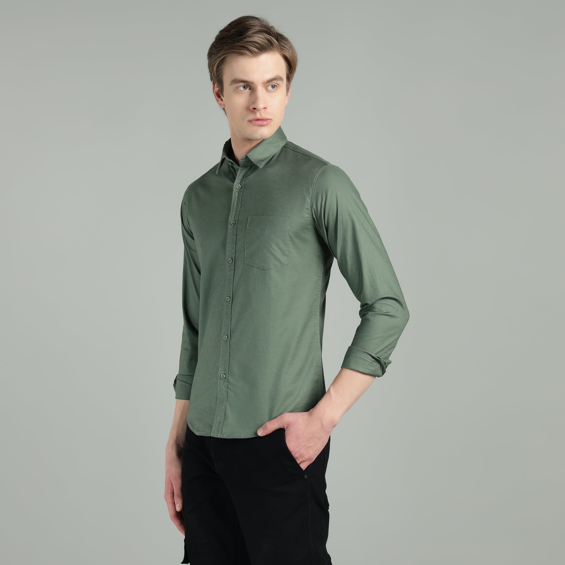 Crafted from a premium breathable cotton-blend fabric, it delivers a soft, smooth feel with enhanced durability and flexibility for easy movement. The classic collar, full-sleeve design, and neatly stitched chest pocket add a refined touch, making it suitable for weekend outings, casual Fridays, travel, and evening get-togethers.
