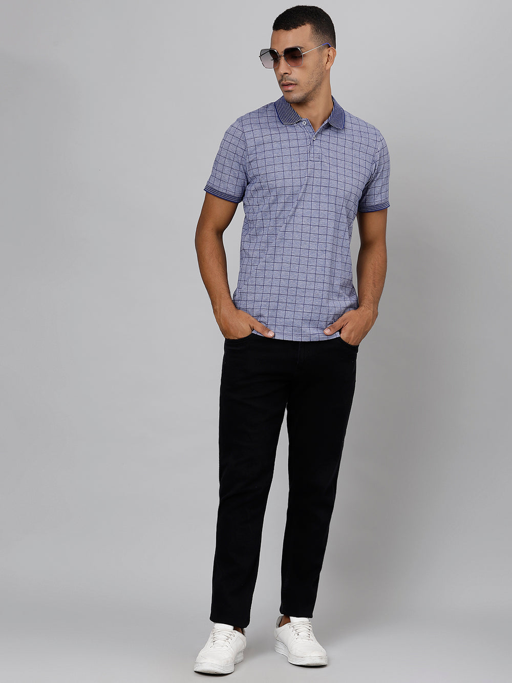 Men Blue Regular Fit Checkered Polo T-Shirt